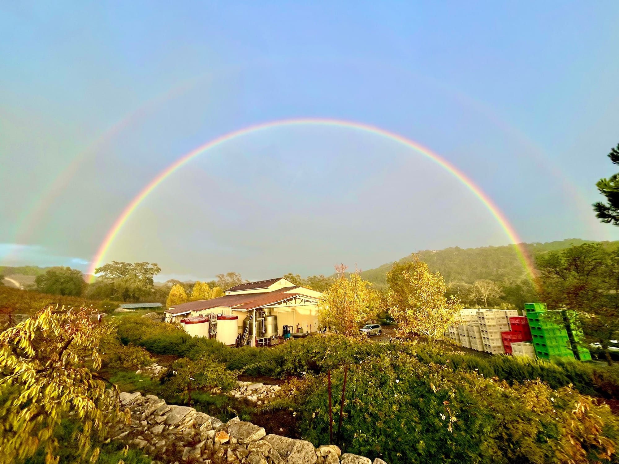 Those colors – autumn golds on the vines and green on the ground – are rare in Paso Robles, and fleeting. Combine them with the deep brown soil from the 3.25" of rain that we received last weekend, and you get a scene of beauty nearly everywhere you look: