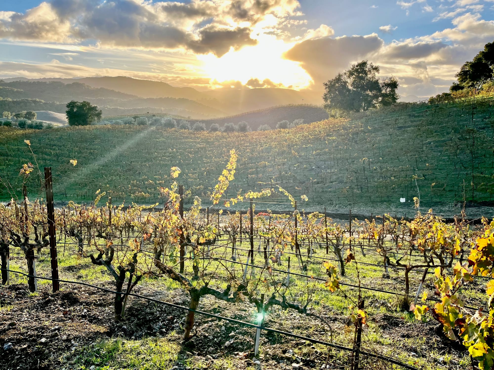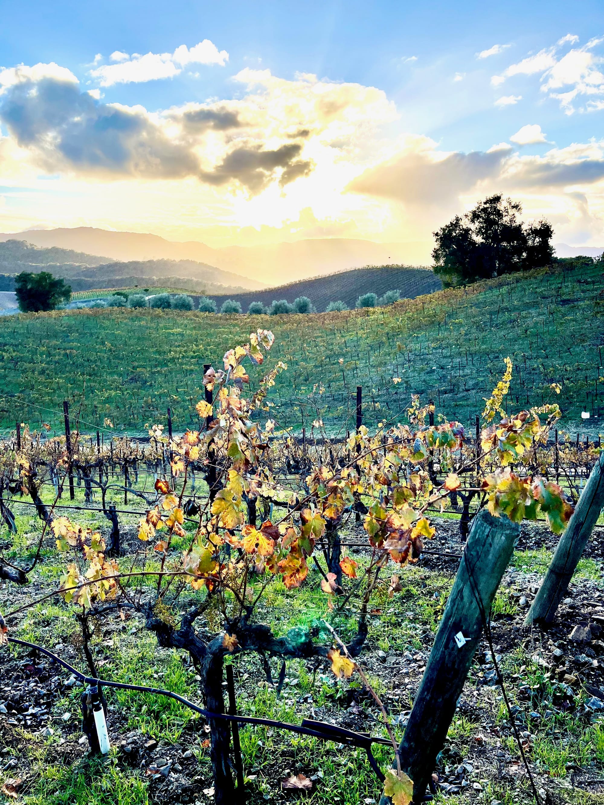The autumn colors in Paso Robles don't last all that long; all it will take is a hard freeze to start the vineyard's natural progression toward dormancy. And that is beautiful in its own right. But meanwhile, if you're visiting in the coming weeks, you're in for a treat. Don't think of any clouds you might get as a problem. Think of them as a theatrical backdrop.