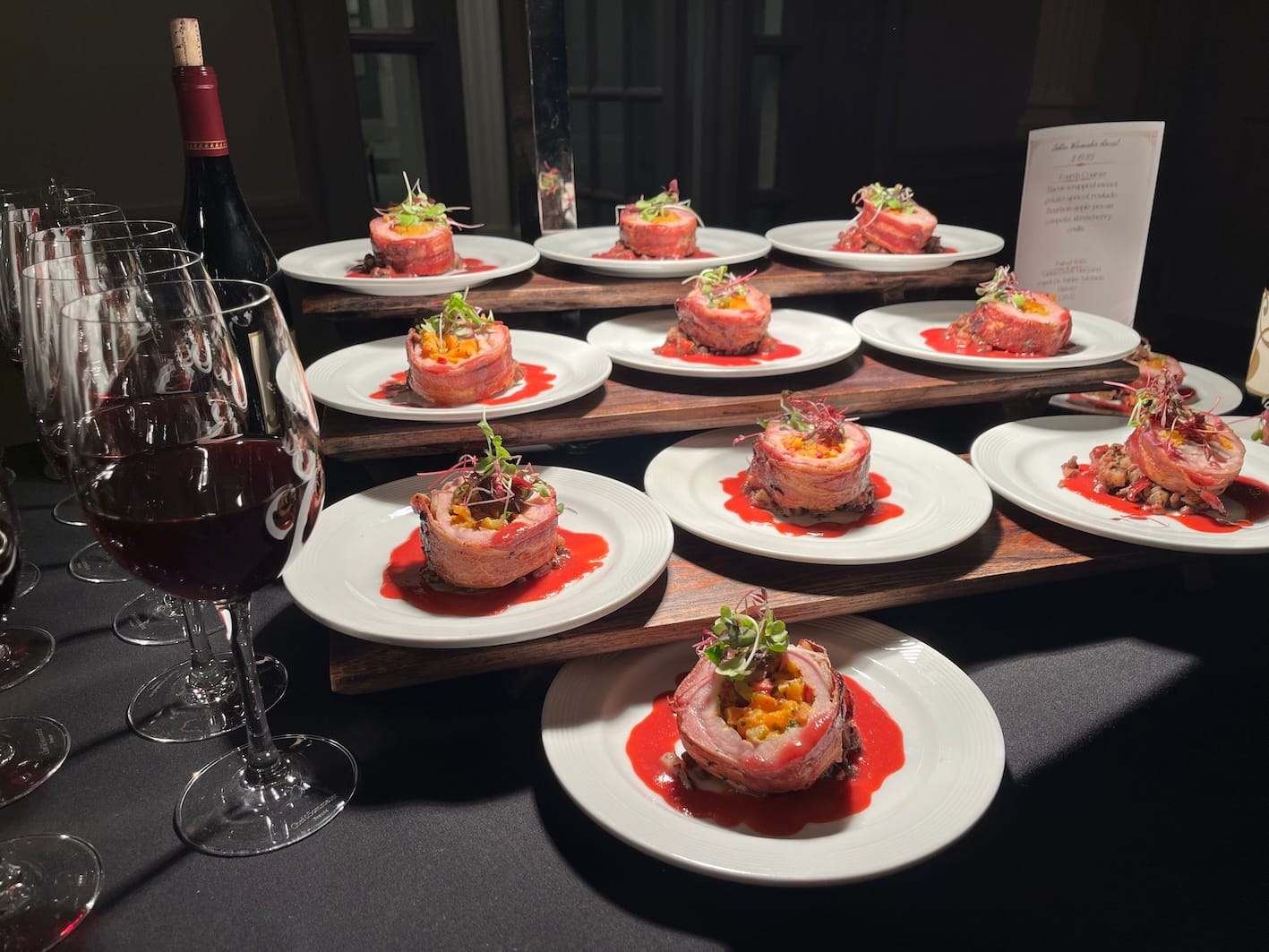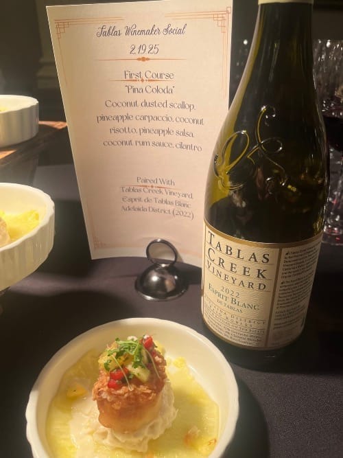 I did my share of country club events and tastings this year, but this collaboration with the Druid Hills Golf Club in Atlanta, by request of VinSiders Melanie and Mac Platt, went next level with the pairings and presentation. It was a walk around style event, with stations set up with the food and wine pairings plated and poured. How about a coconut dusted scallop with Esprit Blanc 2022, or bacon wrapped sweet potato and apricot roulade and Esprit de Tablas Rouge 2021?