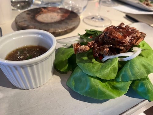 Joseph's is a national culinary treasure in my opinion, and I had the pleasure of hosting a full blown Tablas Creek wine dinner here in May. Right out the gate we knew we were in for it. Esprit de Tablas Blanc with Vietnamese-style soft shell crab, on to cumin and coriander crusted lamb ribs with mint pesto paired with 2021 Cotes de Tablas Rouge.