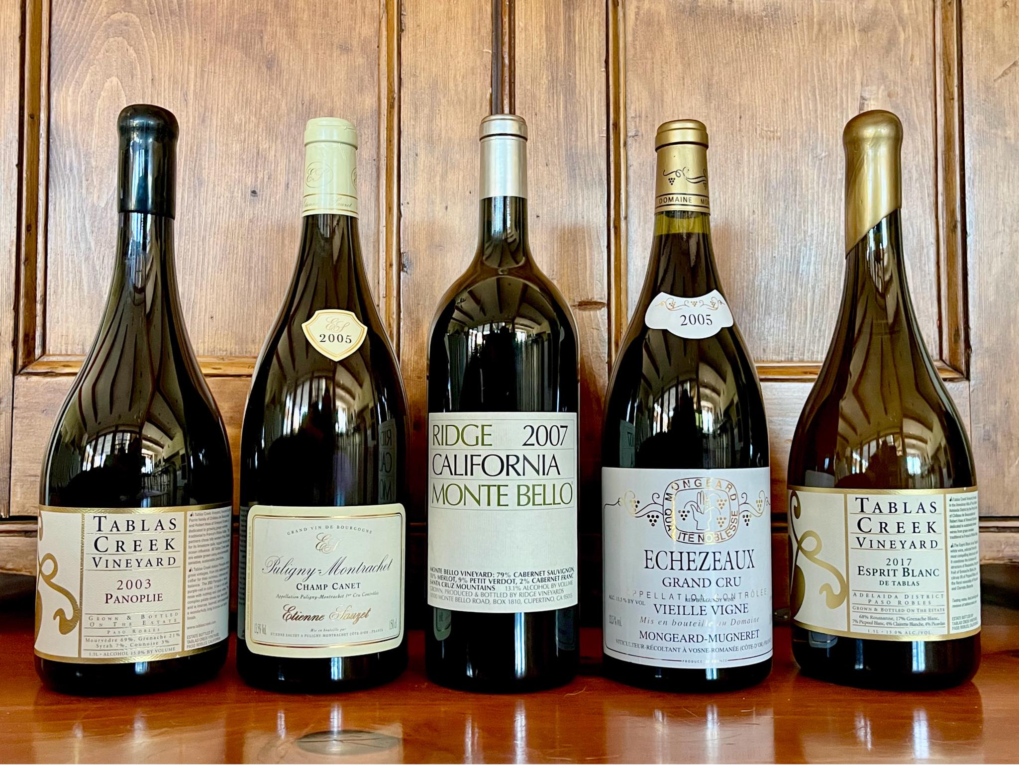 The gala brings in roughly half the group's budget most years, and local winery proprietors who are also supporters of must! are invited to come and host tables. I've decided that if there is ever a time to go deep into my own cellar, this is it. The long tables include some of the local community's greatest wines, and you can count on the bottles making their way down to dozens of wine lovers. Because of that, I decided this year to bring only magnums. I chose five: two from Tablas Creek (the 2003 Panoplie, a vintage I've always thought magical, and the 2017 Esprit de Tablas Blanc), two Burgundies from the amazing 2005 vintage that my dad was thoughtful enough to give us to commemorate our son Eli's birth, and the oldest Ridge Monte Bello magnum I had, from 2007: